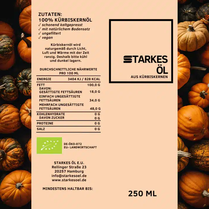 unser Kürbiskernöl wird speziell für dich frisch auf Bestellung gepresst und unmittelbar nach der Herstellung per DHL zu dir nach Hause geliefert. Dank unserer On-Demand-Produktion erhältst du immer ein frisch gepresstes Kürbiskernöl mit intensivem, nussigem Aroma. Keine herben oder ranzigen Geschmacksnoten, die bei länger gelagerten Ölen auftreten können.