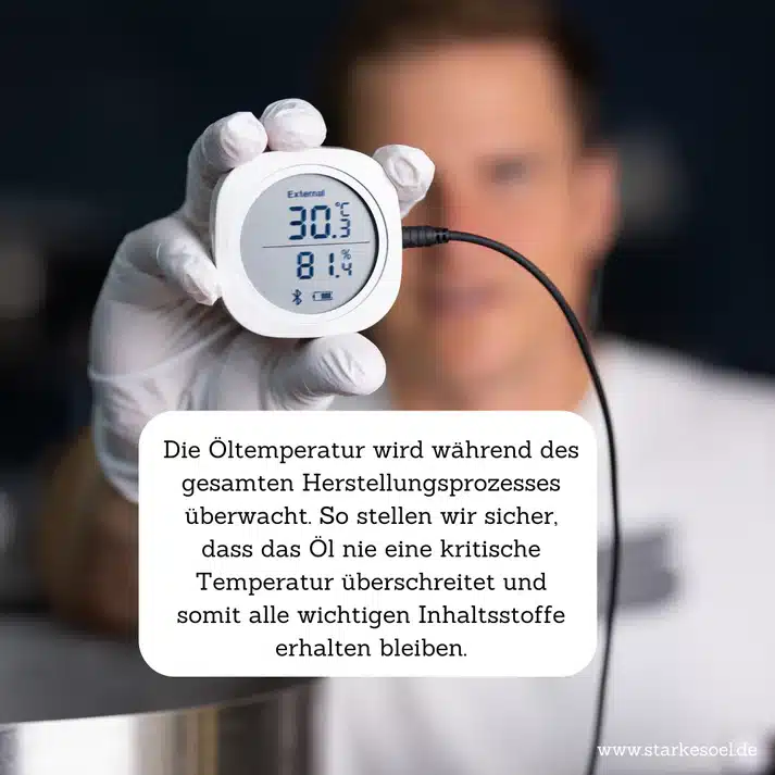 Den Großteil unserer Öle produzieren wir in unserer eigenen Manufaktur. Dadurch gewährleisten wir, dass die Öle stets unseren hohen Qualitätsansprüchen entsprechen. Für die übrigen Öle kooperieren wir mit herausragenden Herstellern, die die Öle nach unseren strengen Vorgaben produzieren.
