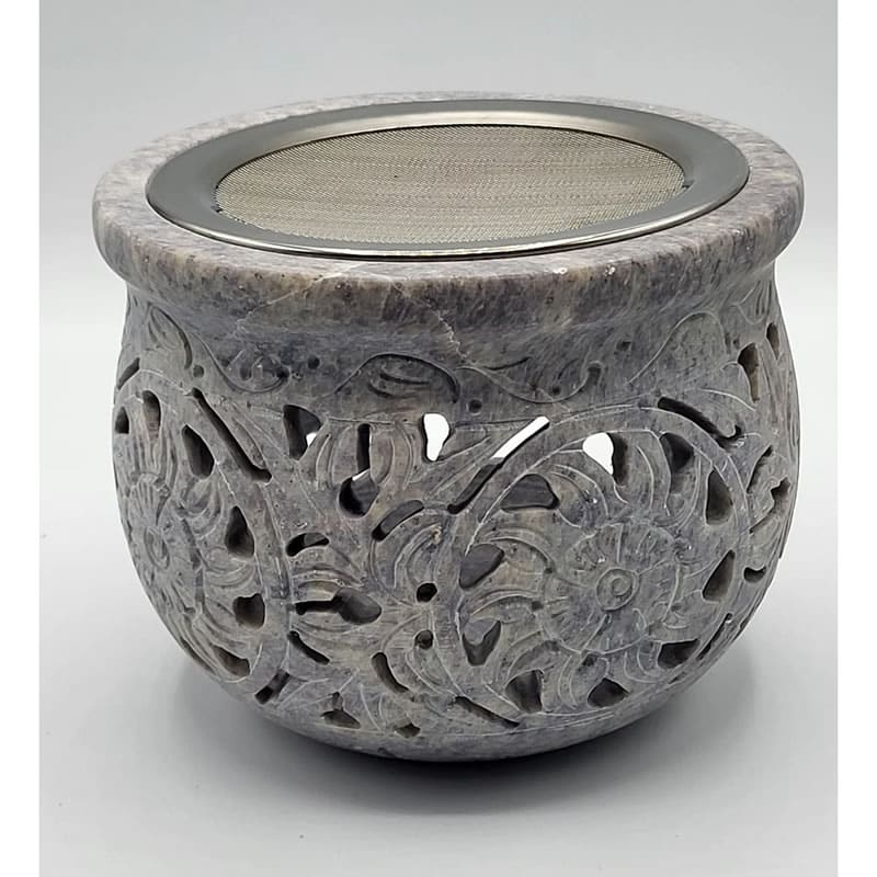 Großes Räuchergefäß aus grauem Speckstein mit Sieb von ma-fumo