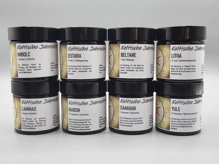 Samhain (31. Oktober – 1. November) Samhain markiert das keltische Neujahr und den Beginn des Winters. Eine passende Räuchermischung könnte aus Weihrauch, Myrrhe und Wacholder bestehen, um die Ahnen zu ehren und den Übergang in die dunkle Jahreszeit zu symbolisieren.